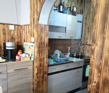 Konyhában és étkezőben fali lambéria, otthonos, kuckós hangulat
