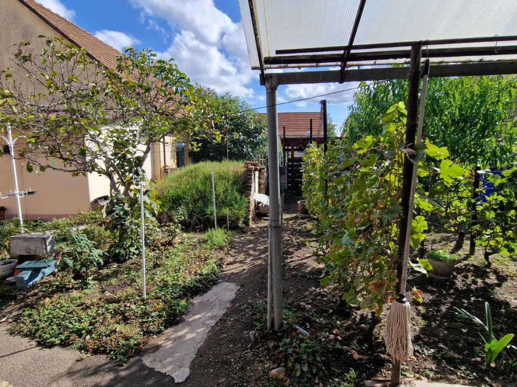A telek gondozott kerttel büszkélkedhet, amelyben gyümölcsfák és szőlő is található, ideális környezet a kikapcsolódáshoz. Az utcafronti rész fagerendás födémmel rendelkezik, míg a hátsó részen betonfödém található. A tető cseréppel fedett, és kiváló állapotban van.