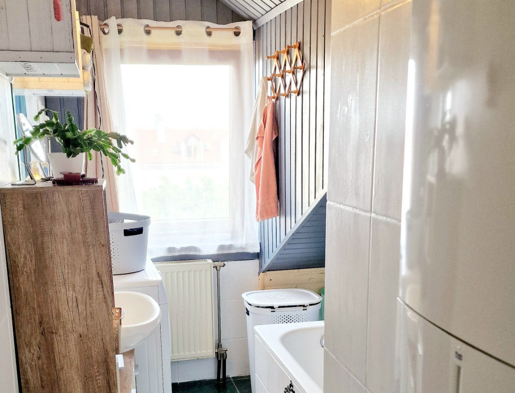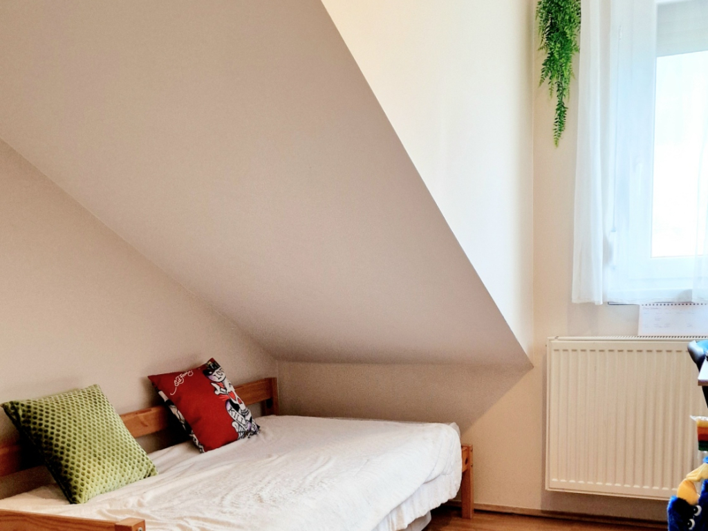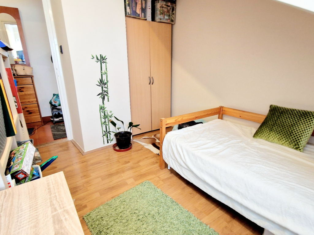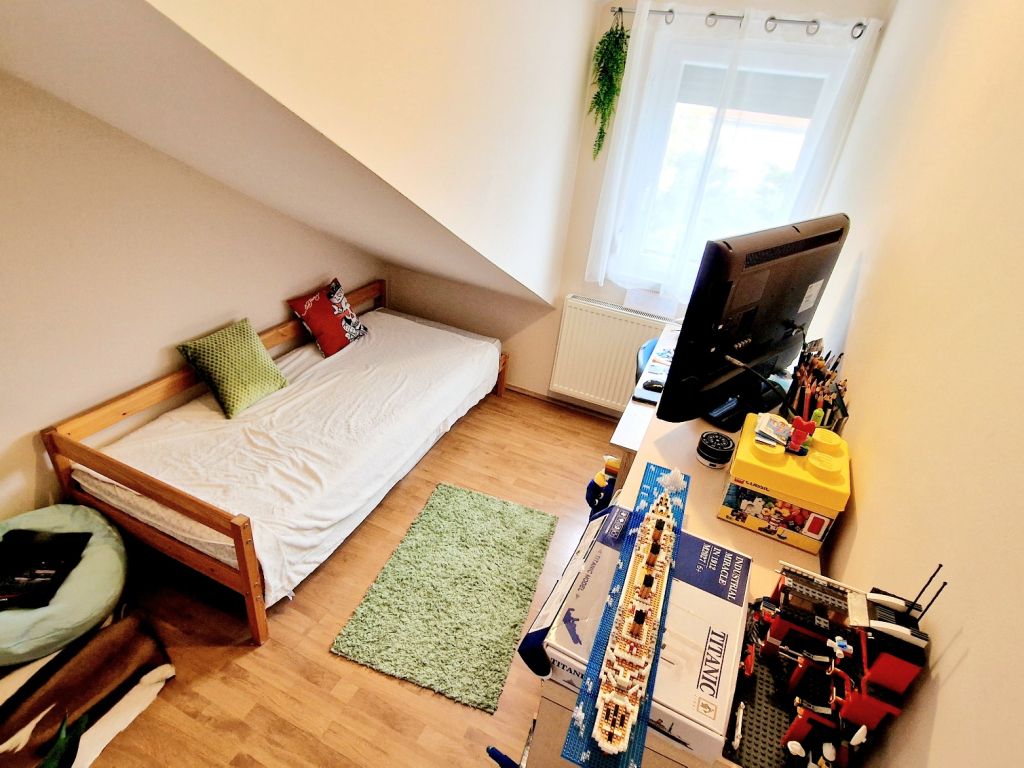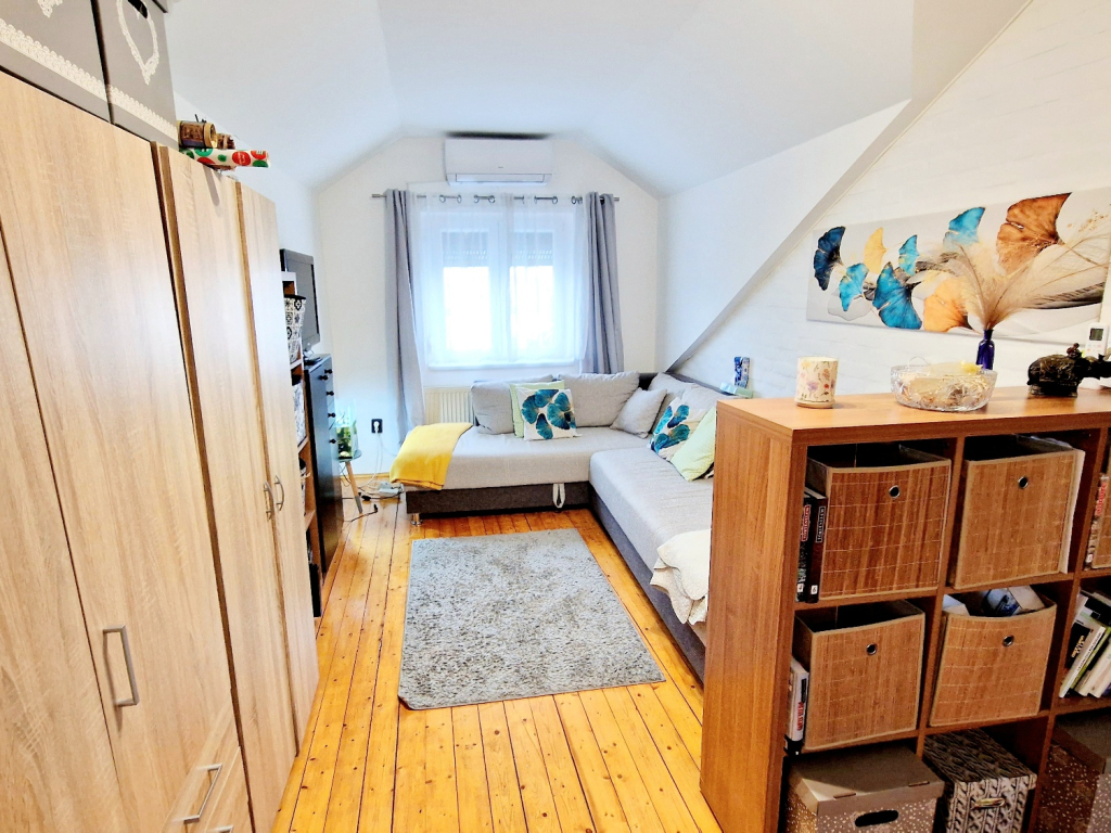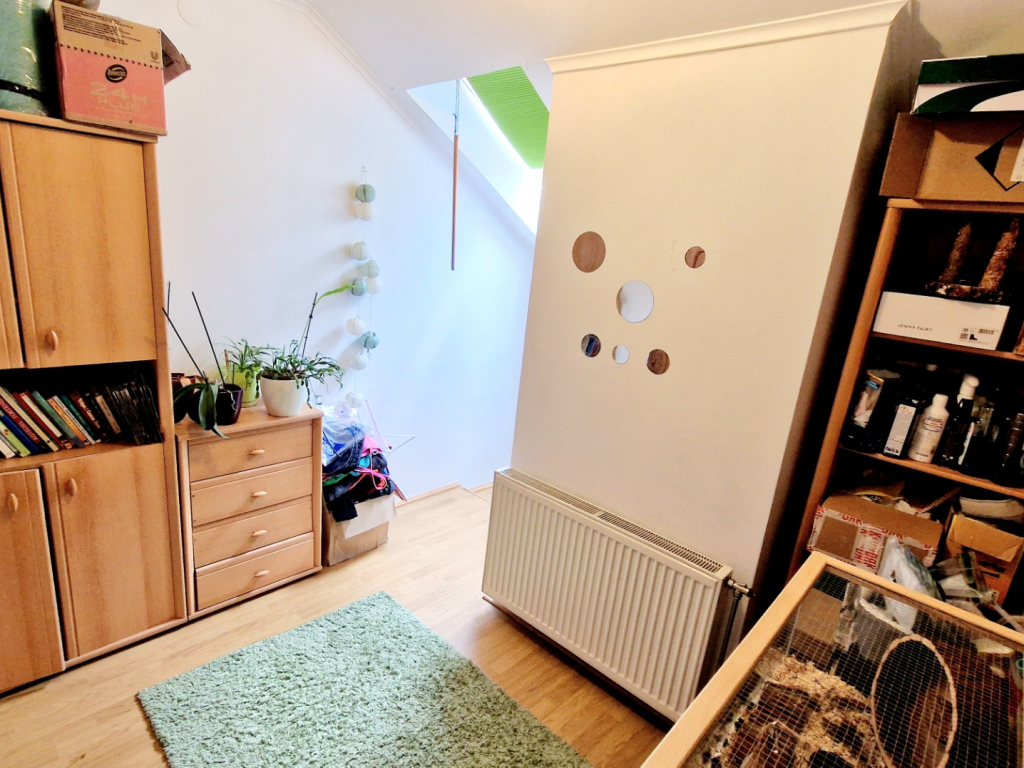 A lakás kelet-nyugati tájolású, és ingyenes parkolási lehetőséggel rendelkezik. A buszmegállók csupán három percnyi sétára találhatók, így a közlekedés is kiváló. Az ingatlan tehermentes, jó állapotú, egy téglaépítésű házban található, amelyre 20-30 évvel ezelőtt építették rá a tetőteret.