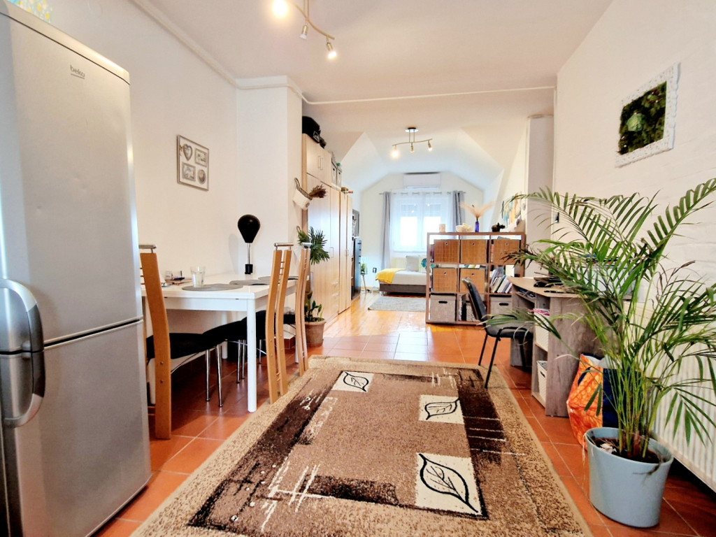 Eladásra kínálunk egy tetőtéri lakást a Hajnóczy utcában, amely 58/72 négyzetméteres, és ideális befektetési lehetőség is, hiszen könnyen bérbe adható egyetemisták számára.