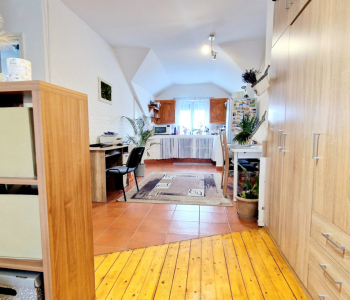 Egy tágas szoba egybenyitva a konyhával és nappalival
