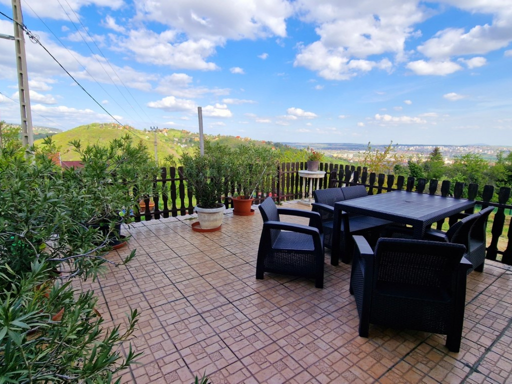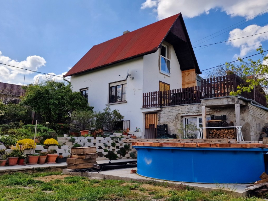 Pécsett Ürögi városrészben lévő, körpanorámás, zártkerti csaladi ház gyümölcsössel, szőlővel, nagy telekkel, pincével, zárt víztárolókkal, udvari medencével felújítás közben eladó. Telek méret: 1000nm Épület mérete: 3x30nm Az épület felújítása elkezdődött de nincs befejezve. A tetőtérben egy garzon az emeleten egy szoba és egy nappali-konyha, a földszinten konyha, tároló és pince található. A terasz a tervek szerint beépíthető nappalinak, a garázs kész van, innen nyílna egy előszobán keresztül a bejárat. Az udvarban medence aminek a végleges helye már le van betonozva. A vezetékes vízhez az előkészítés megvan már csak rá kell csatlakozni az utcai vízhálózatra (hamarosan elér idáig). A vízellátás jelenleg ciszternából történik. Ajelenlegi nagy teraszról panorámás kilátás nyílik a mecsekre és a váro felé. Egy udvari parkolós és egy garzs áll rendelkezésre. Hívjon bizalommal!