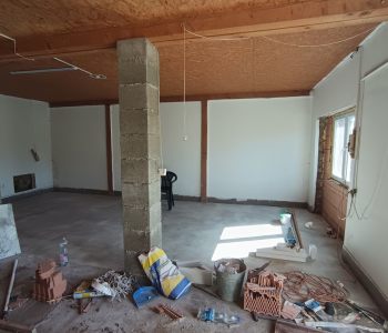 Új tető, szigetelt falak (kő + kőzetgyapot + gipszkarton)