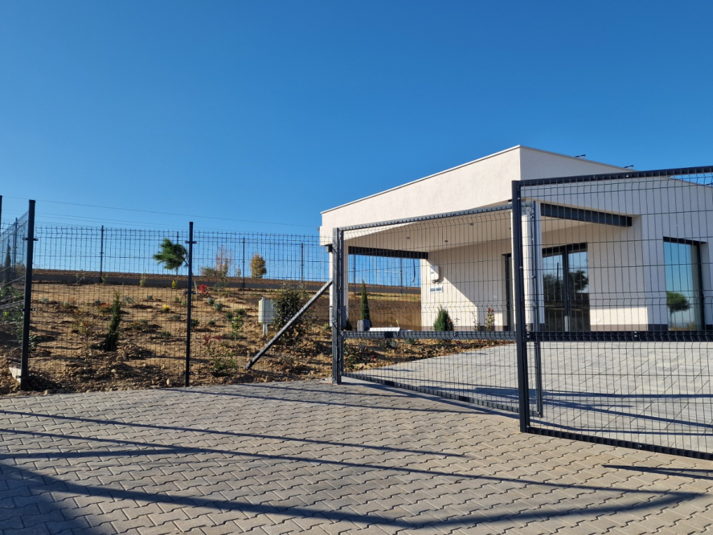 - Az épület kerítéssel körbekerített, két gépjármű beállóval biztosított.